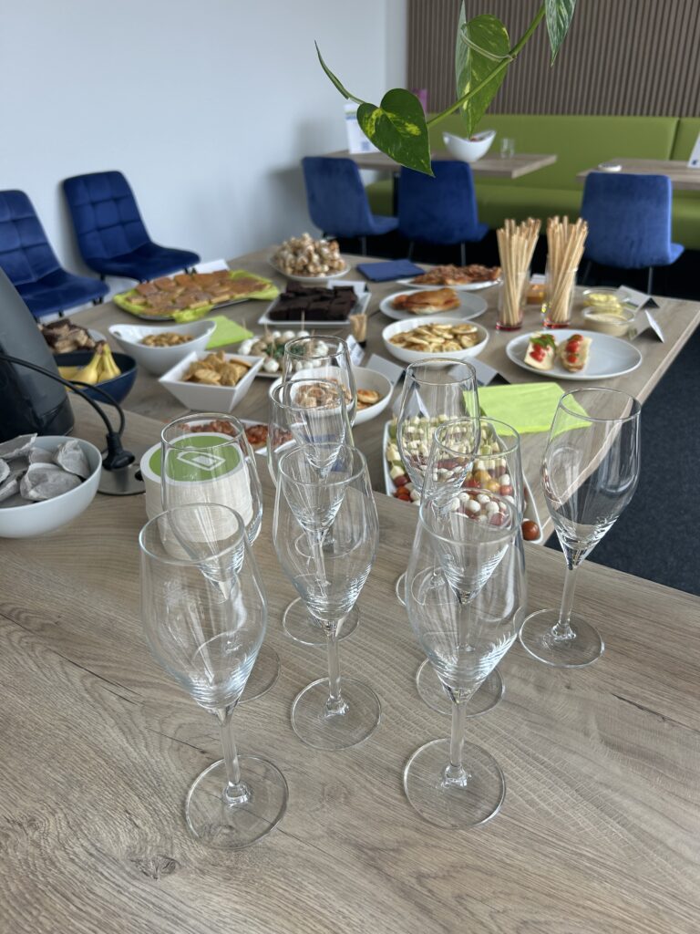 Für das leibliche Wohl sorgte ein abwechslungsreiches selbst gemachtes Buffet, das zum Verweilen und Netzwerken einlud. Ein weiteres Highlight war das Video zur Entstehung unseres Graffitis, das die kreative Seite unseres Unternehmens zeigte und für viele begeisterte Blicke sorgte.